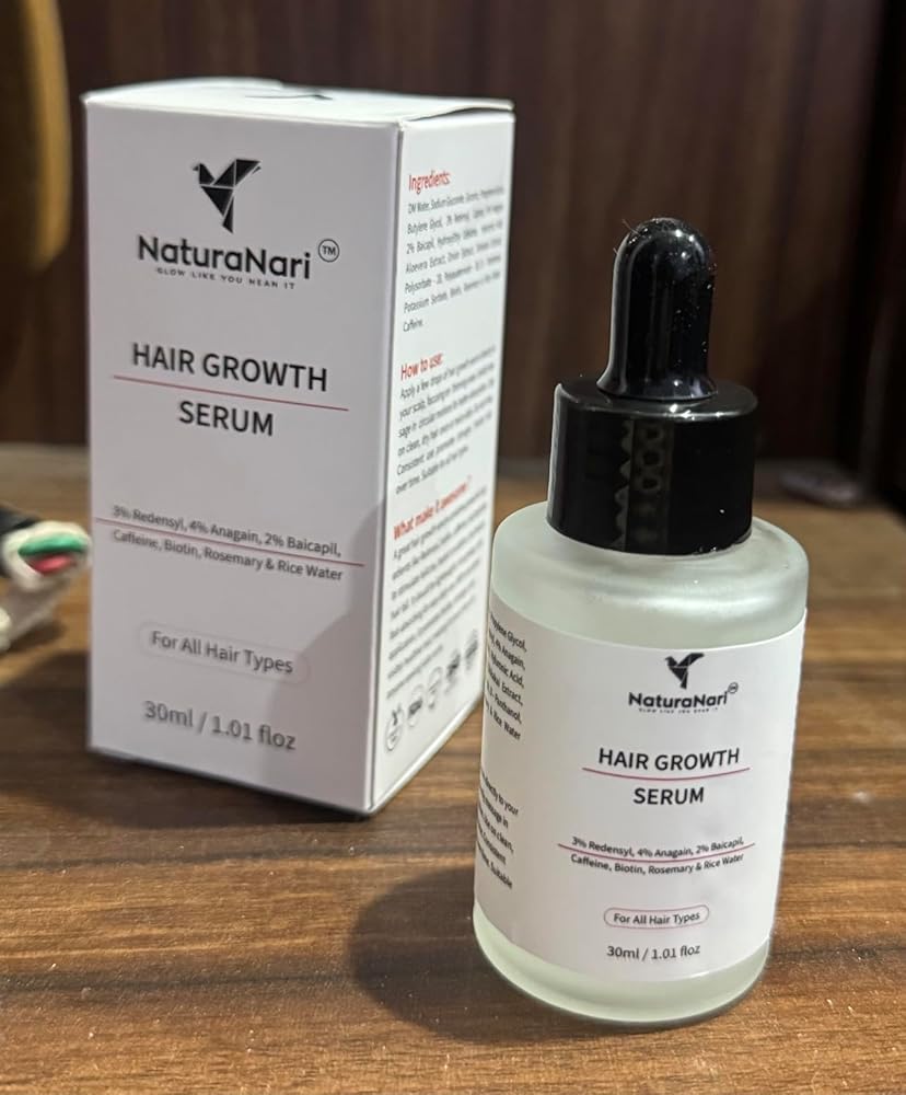 Get stronger roots and fuller-looking hair with NaturaNari’s Advanced Hair Growth Serum. Enriched with clinically studied ingredients like Redensyl, Anagain, and Baicapil, this lightweight formula helps reduce hair fall and support natural hair regrowth. It works at the root level to reactivate dormant follicles and improve overall scalp health.