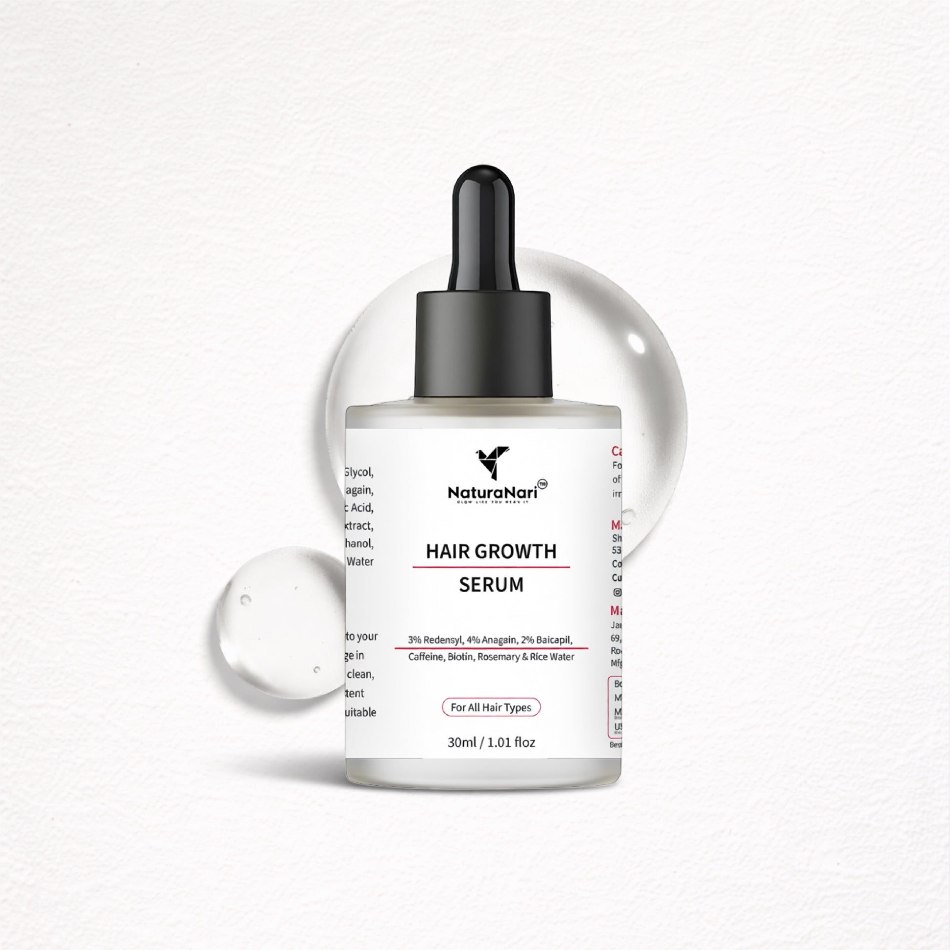 Get stronger roots and fuller looking hair with NaturaNari’s Advanced Hair Growth Serum. Powered with clinically studied ingredients like Redensyl, Anagain and Baicapil, this lightweight formula helps reduce hair fall, reactivate dormant follicles and improve overall scalp health.